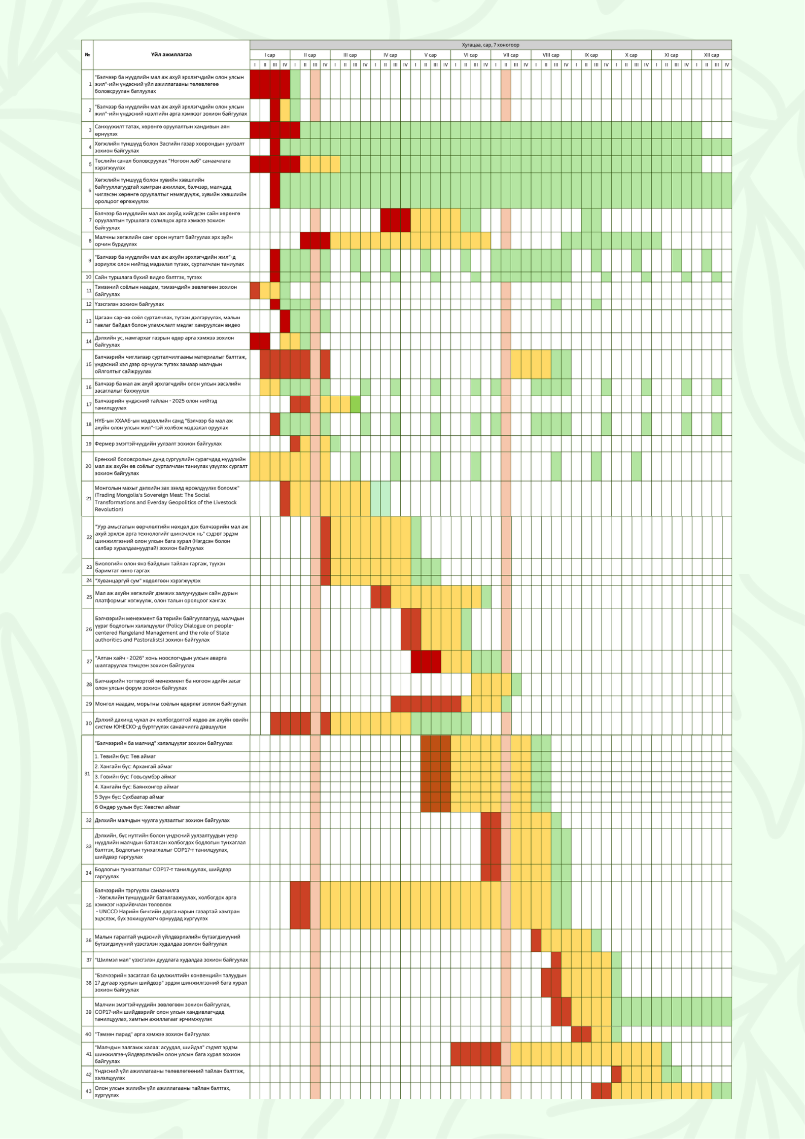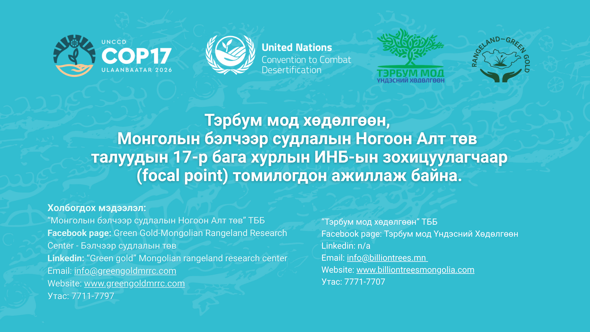 Бид 2004 - 2020 хүртэл оноос эхлэн бэлчээрийн газрын менежмент, малчдын амьжиргааг дэмжих, өртгийн сүлжээг сайжруулах, нэг малаас авах ашиг шимийг нэмэгдүүлэх, бэлчээрийн шинэ технологийг нэвтрүүлэх, бэлчээрийн үндэсний хэмжээний мониторингийн сүлжээг бий болгох, хөгжүүлэх, сургах, бэлчээрийн зохистой дадлын стандартыг нэвтрүүлэх чиглэлээр Швейцарын хөгжлийн агентлагийн Ногоон-Алт төсөлд ажиллаж байсан.